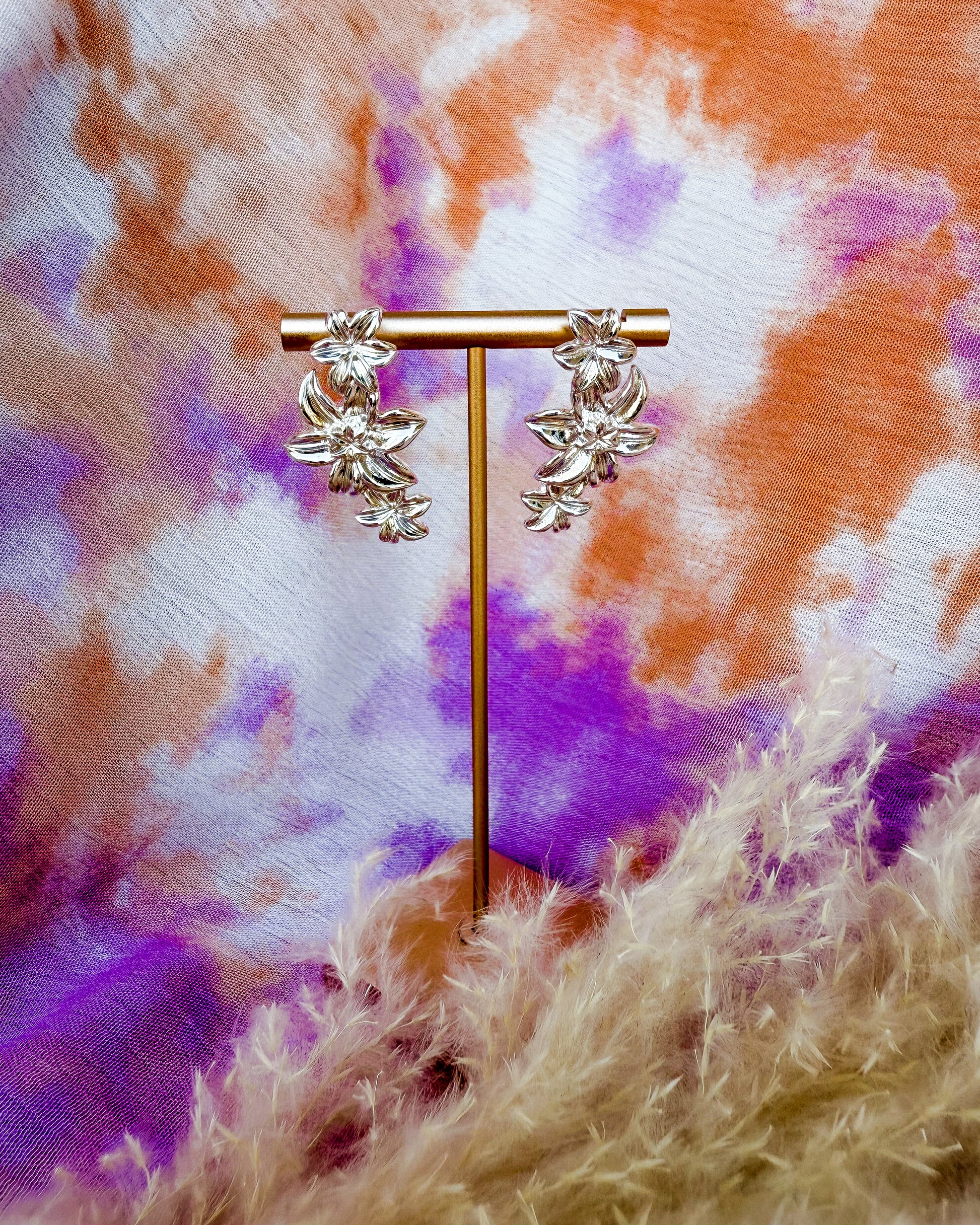 Gorgeous silver plated floral earrings that will literally match anything! Also available in gold, just search our Pualani Gold Earrings!