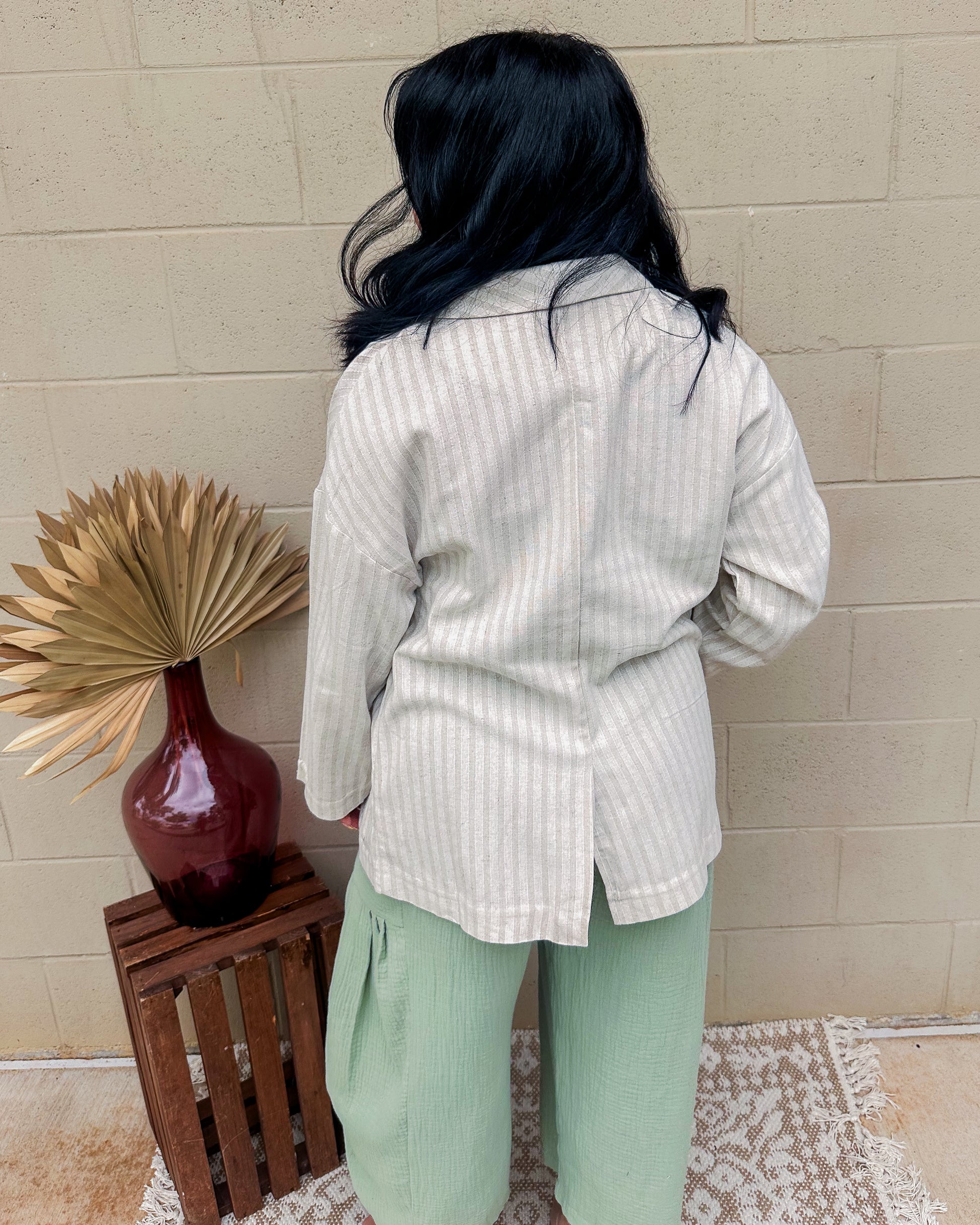 The Richie Blazer offers a timeless striped design with a clean, basic cut that pairs effortlessly with any outfit. Its structured fit provides a polished look, making it an ideal choice for both professional and casual settings. Lightweight and comfortable, this blazer brings understated elegance to your wardrobe with ease.