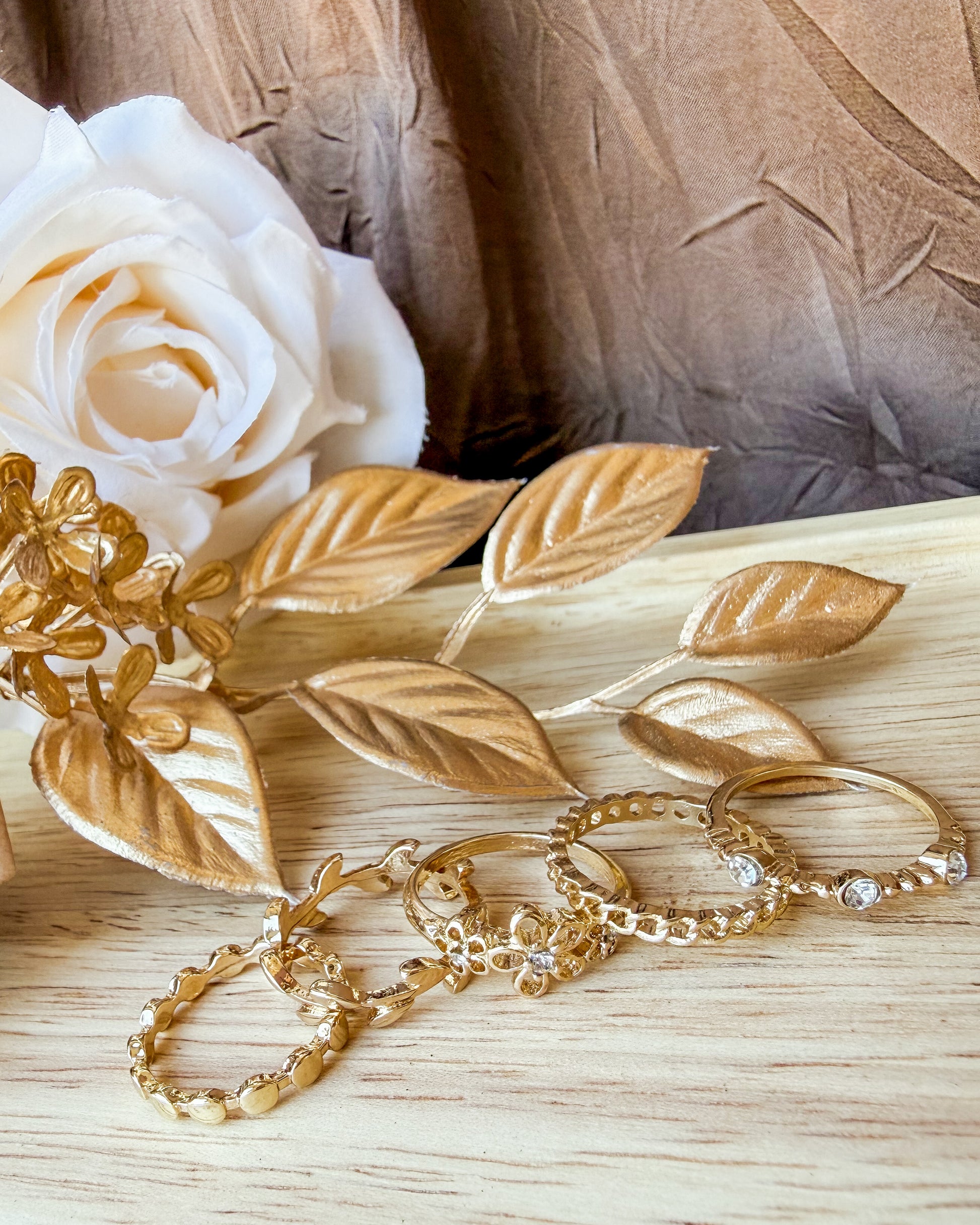 5 gold plated rings included in this set, perfect gift or stocking stuffer! Size 7.