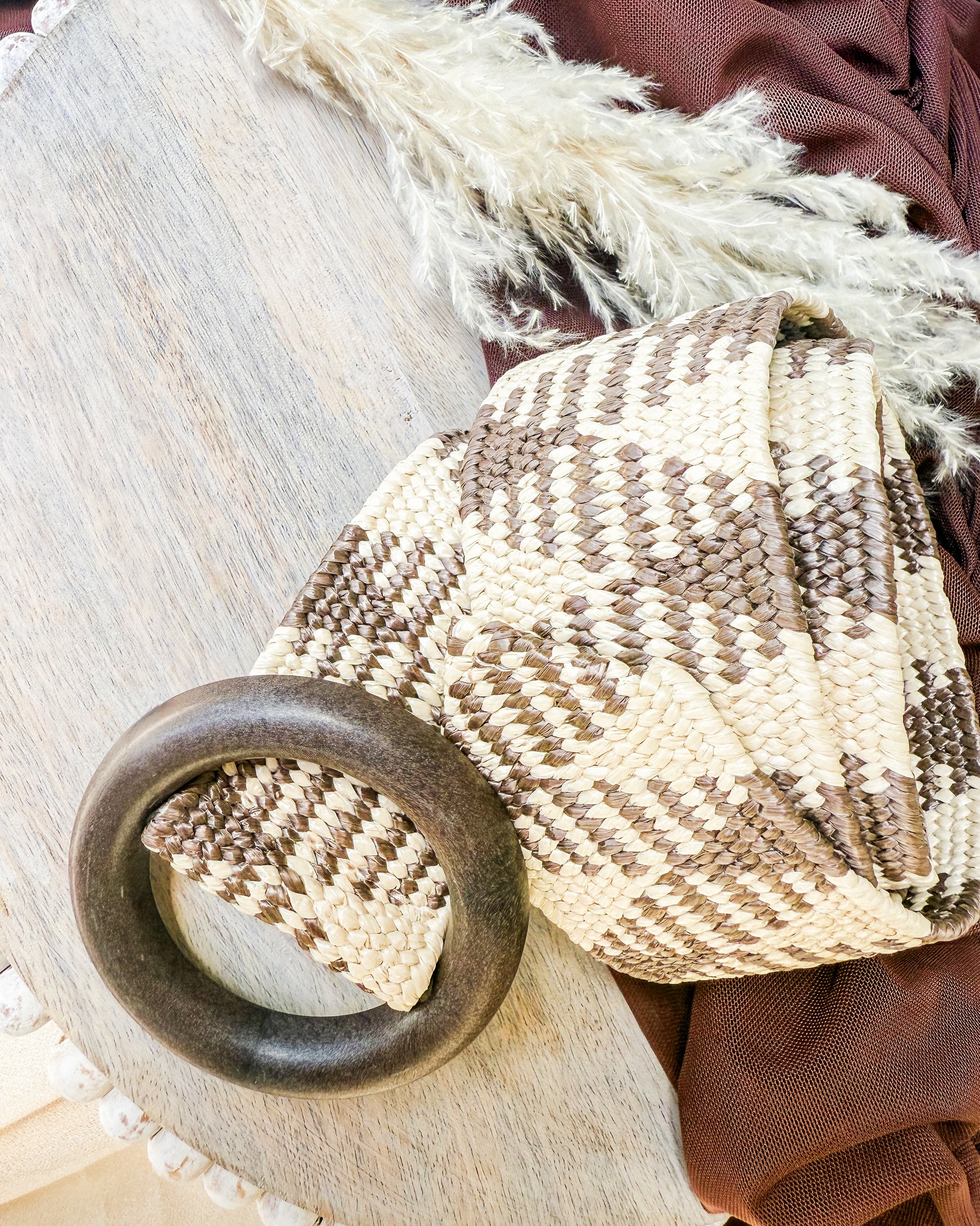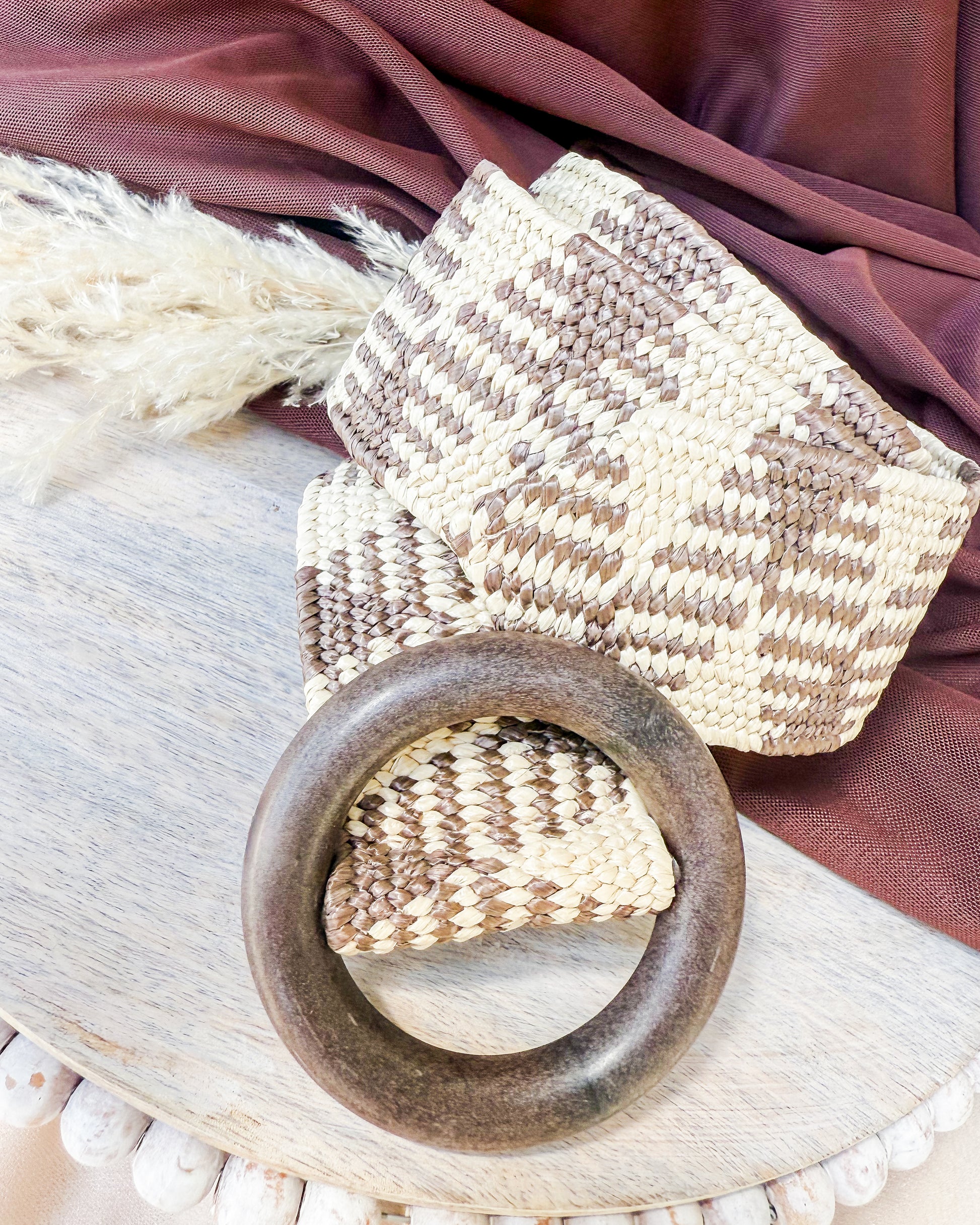 Stretchy belt with a rustic, wooden buckle. Size fluid.