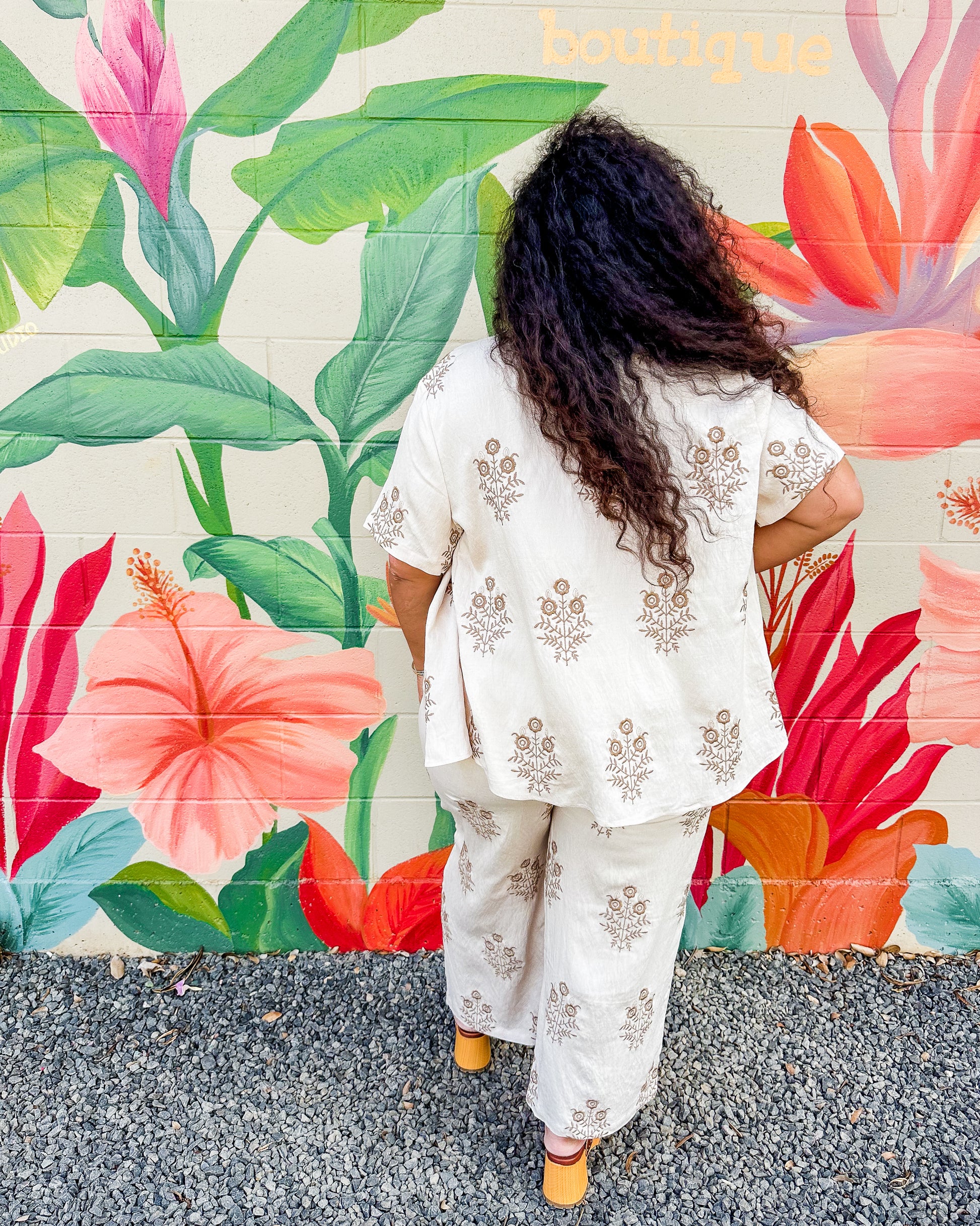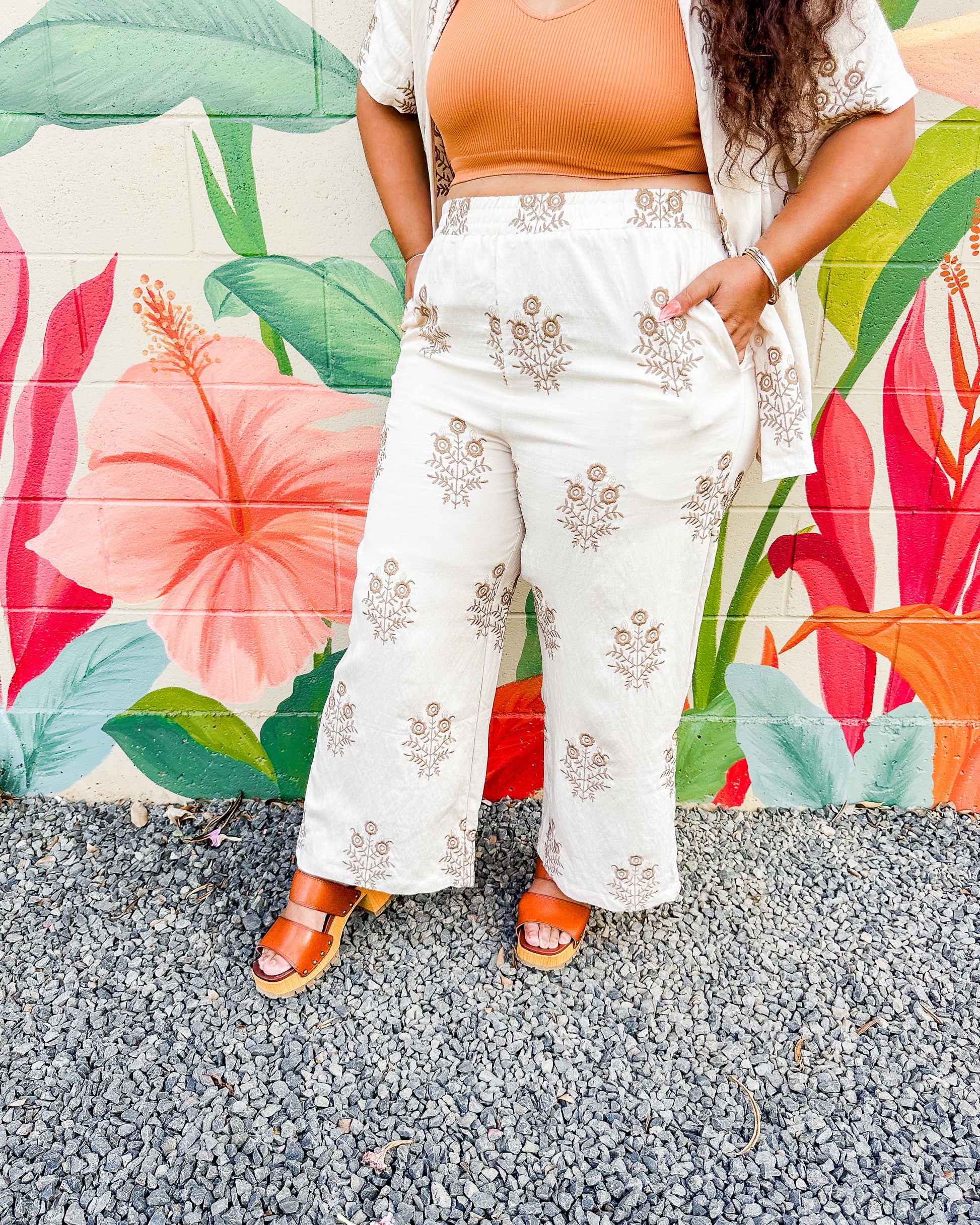 Delicately embroidered Rosina Pants offer effortless comfort with their lightweight fabric and practical side pockets. The elastic waistband ensures a perfect fit for all-day wear, combining style and functionality in one versatile garment.