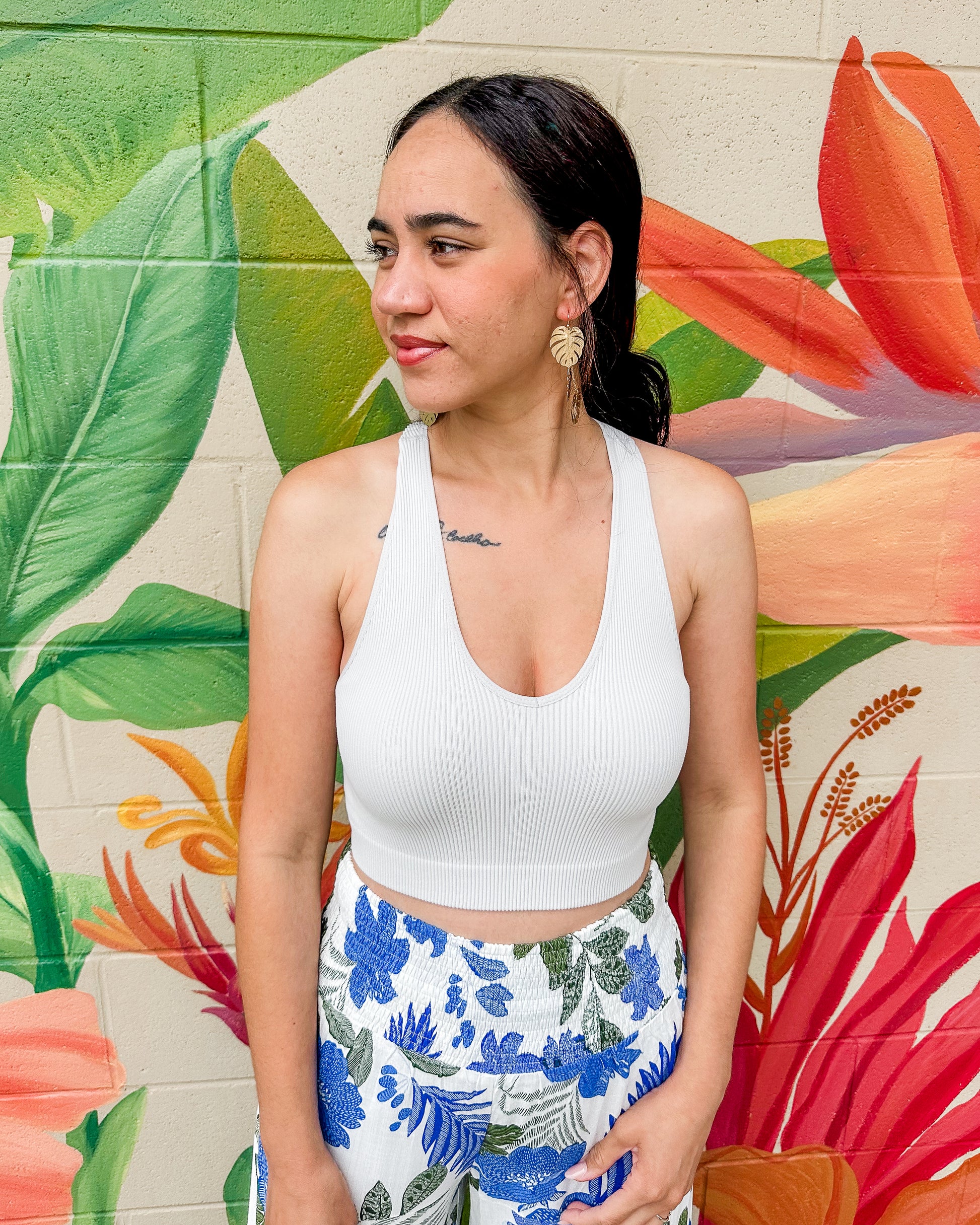 Stay cool and stylish in our Sara Bra Top! This ribbed cropped racerback tank top not only provides a flattering fit, but also allows for unrestricted movement. Perfect for workouts, casual wear, and everything in between. Upgrade your wardrobe with this fun and versatile top.
