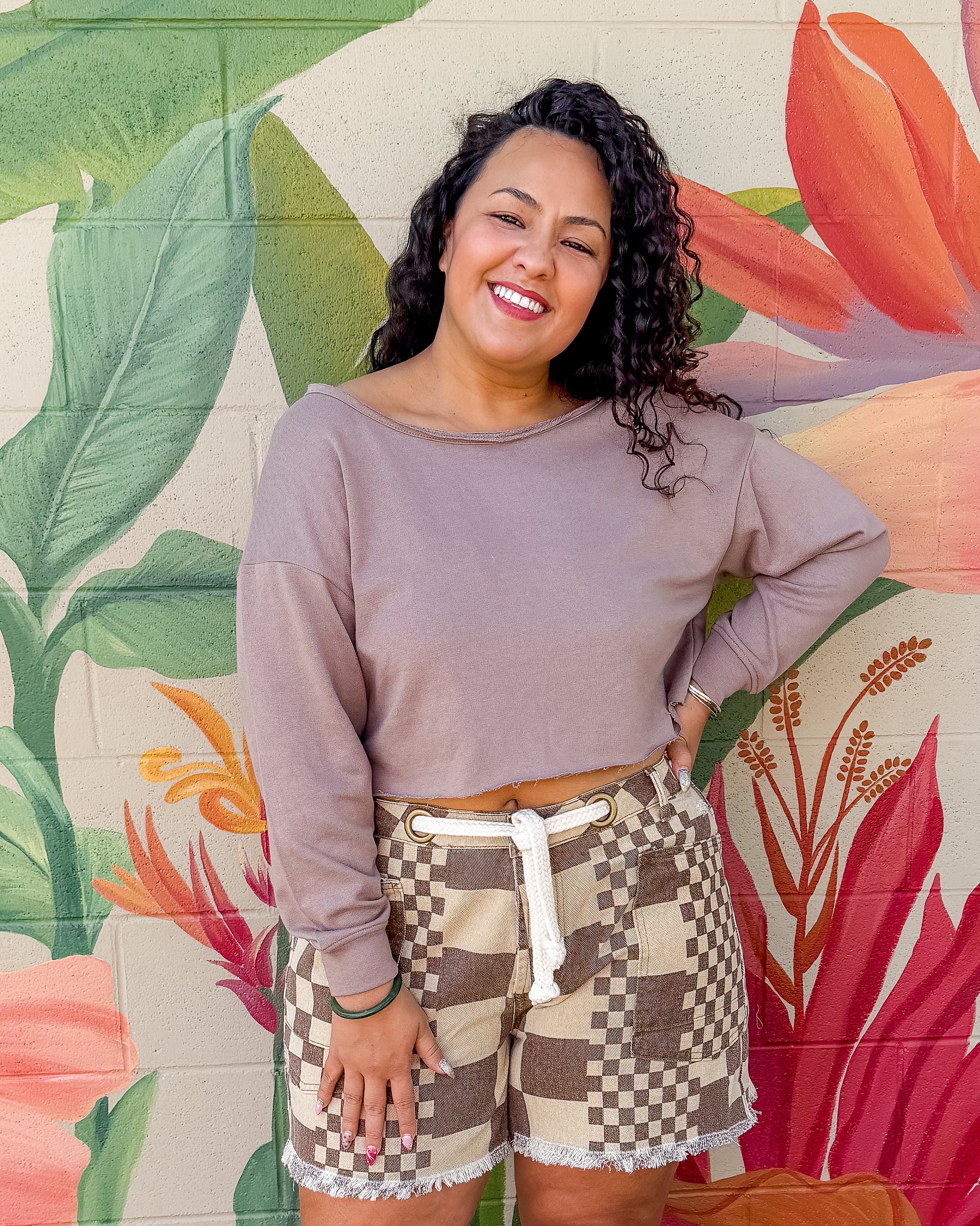 Saya Shorts in a checkered printed feature a classic washed denim construction with a relaxed fit and frayed hem for an effortless, lived-in look. The braided waist belt adds a touch of detail and helps define your silhouette. Perfect for casual days, beach trips, or laid-back weekends.