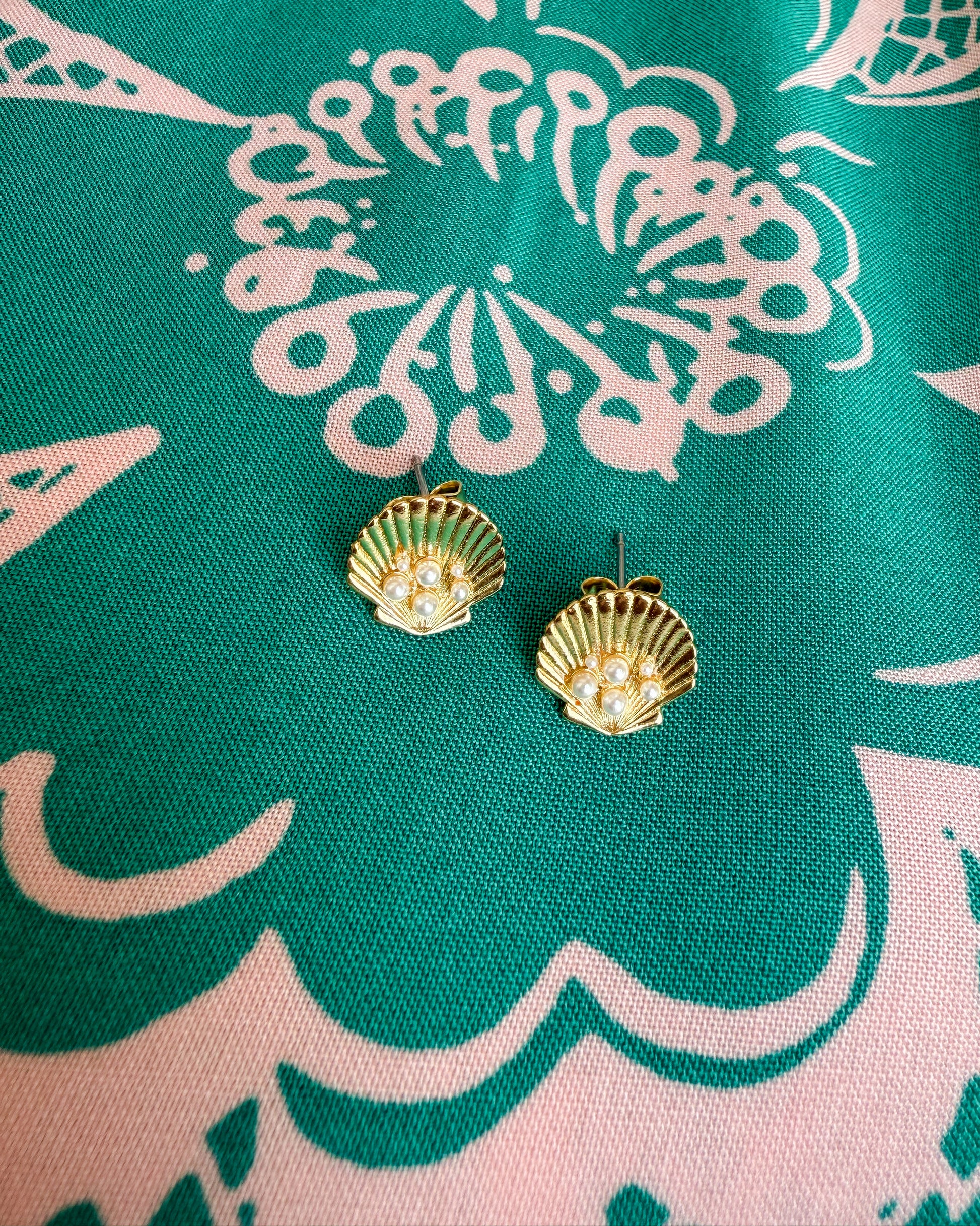 Channel your inner sea maiden (aka mermaid) with these cute new studs. Gold plated with mini pearls in the center, like true hidden treasure.