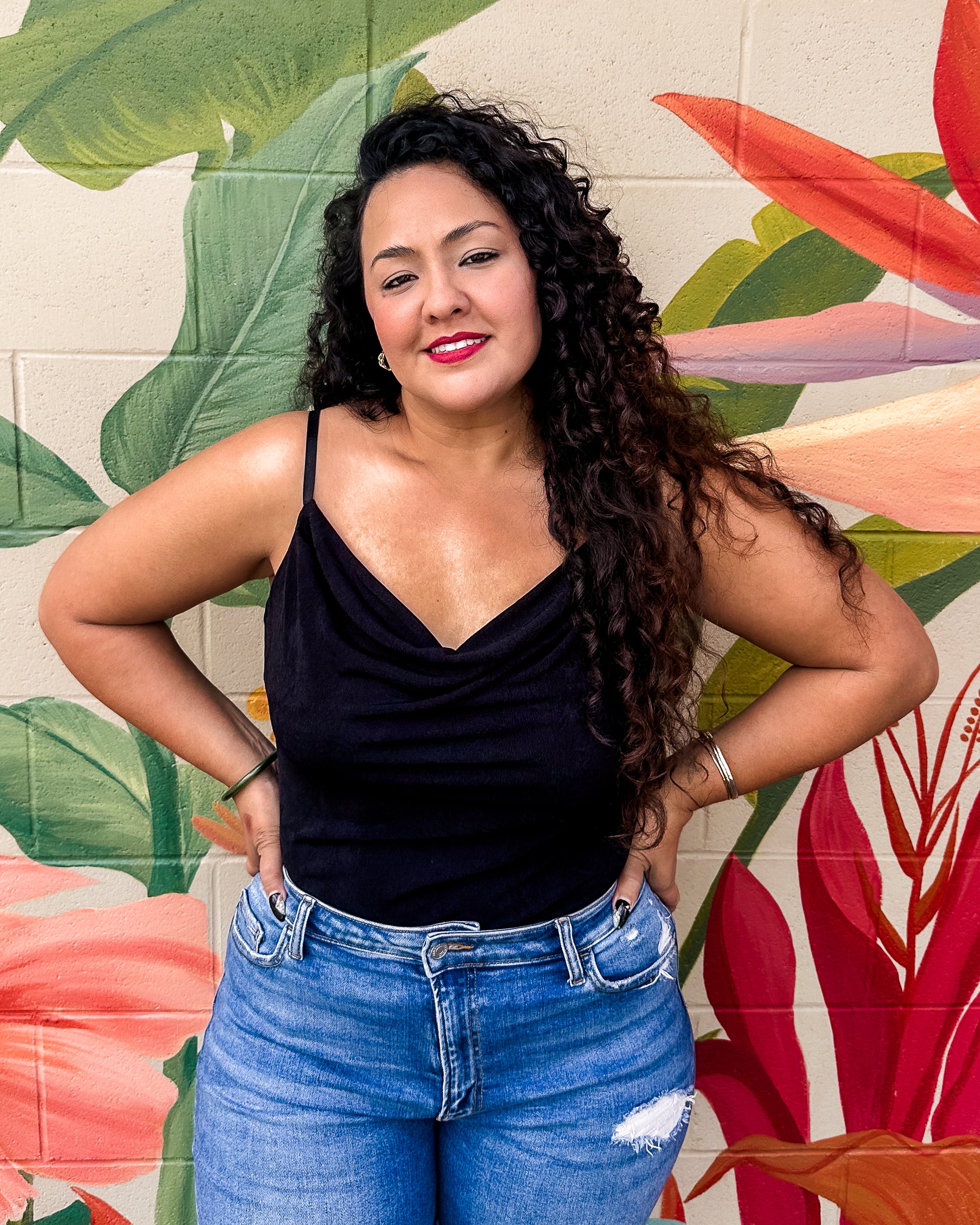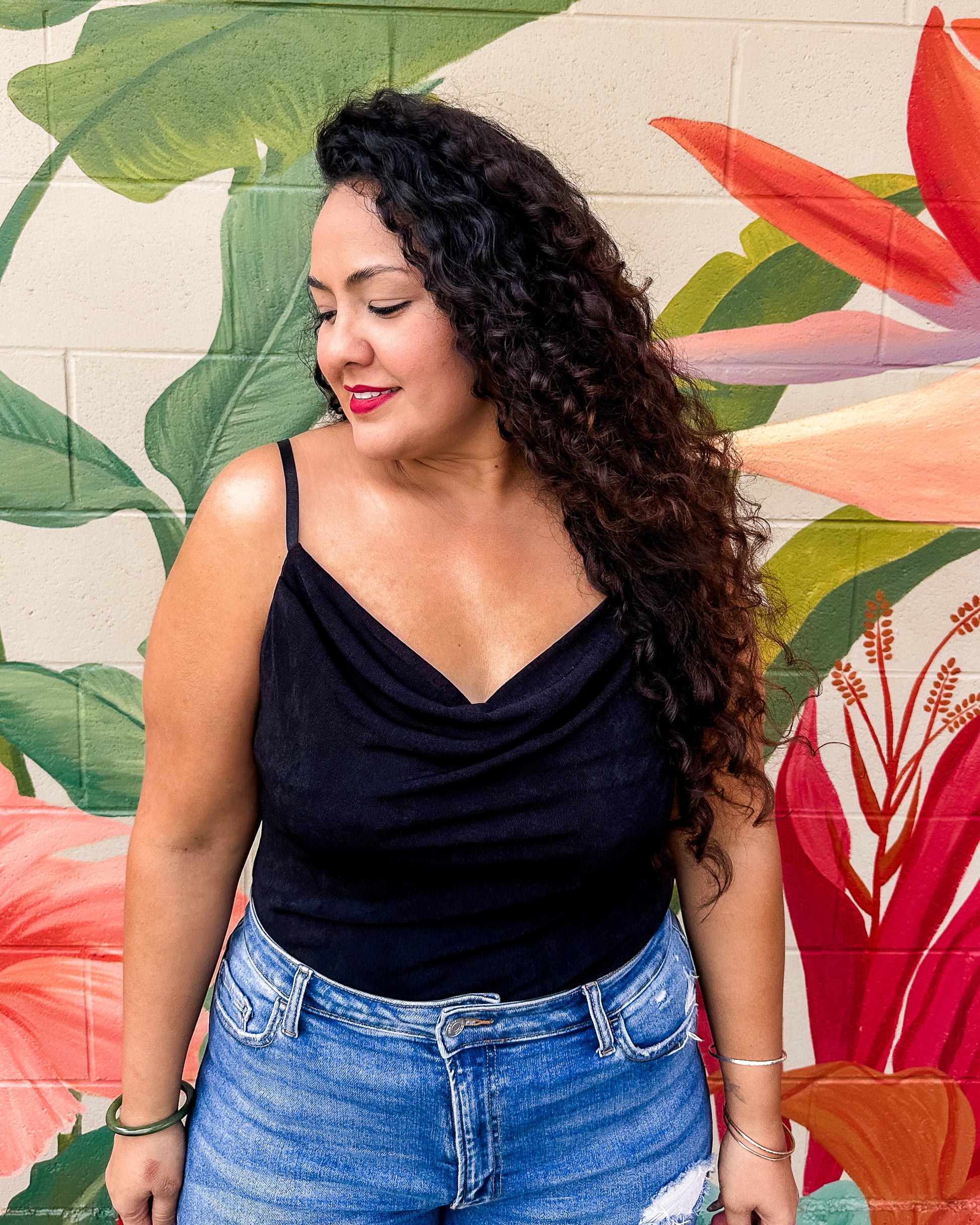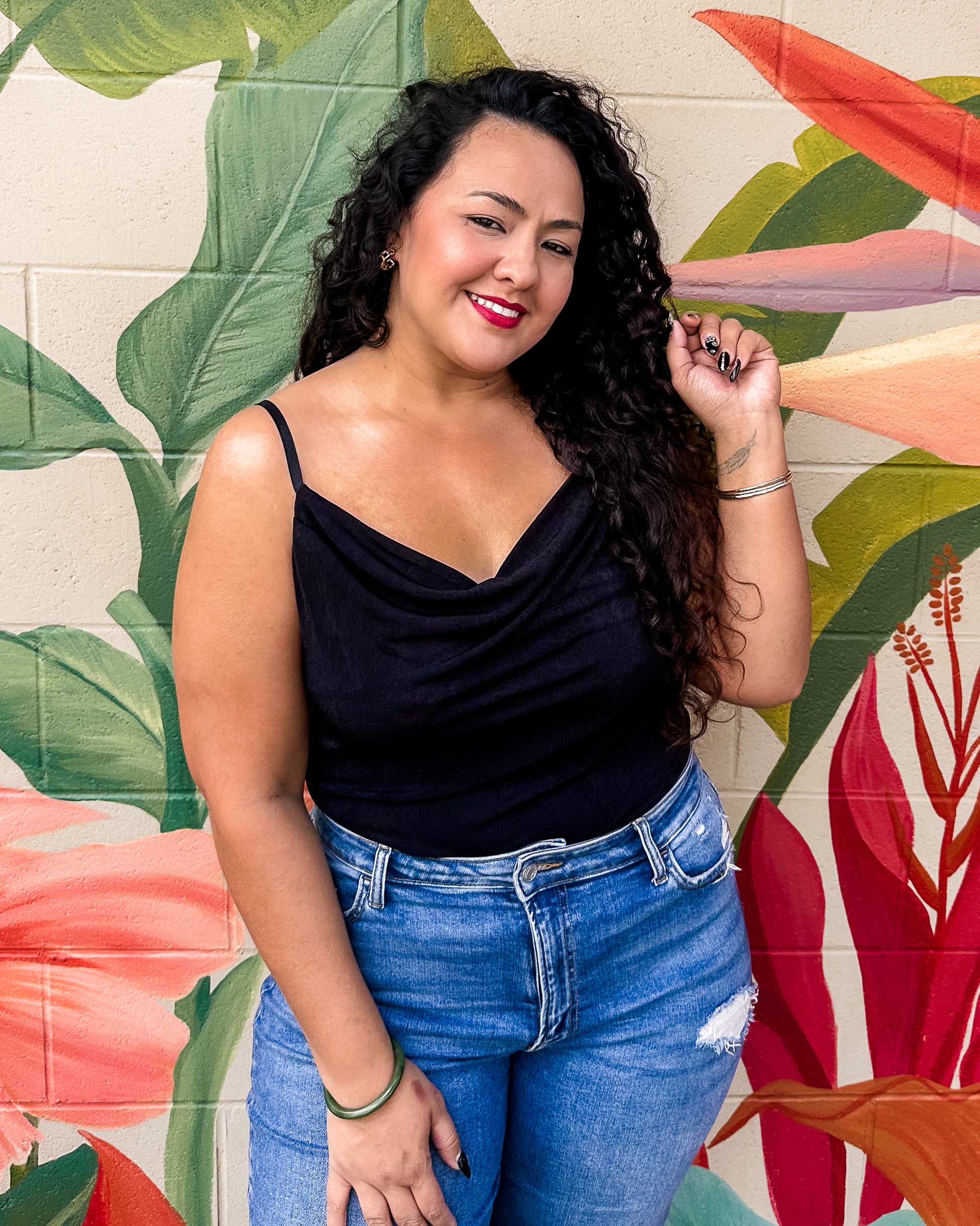 The She-ra Bodysuit features delicate spaghetti straps and a softly draped cowl neckline, creating an effortlessly elegant silhouette. Designed for comfort and style, its smooth fabric hugs the body gently, making it perfect for layering or wearing on its own for a refined look. This versatile piece transitions seamlessly from day to night while keeping you feeling confident and relaxed.