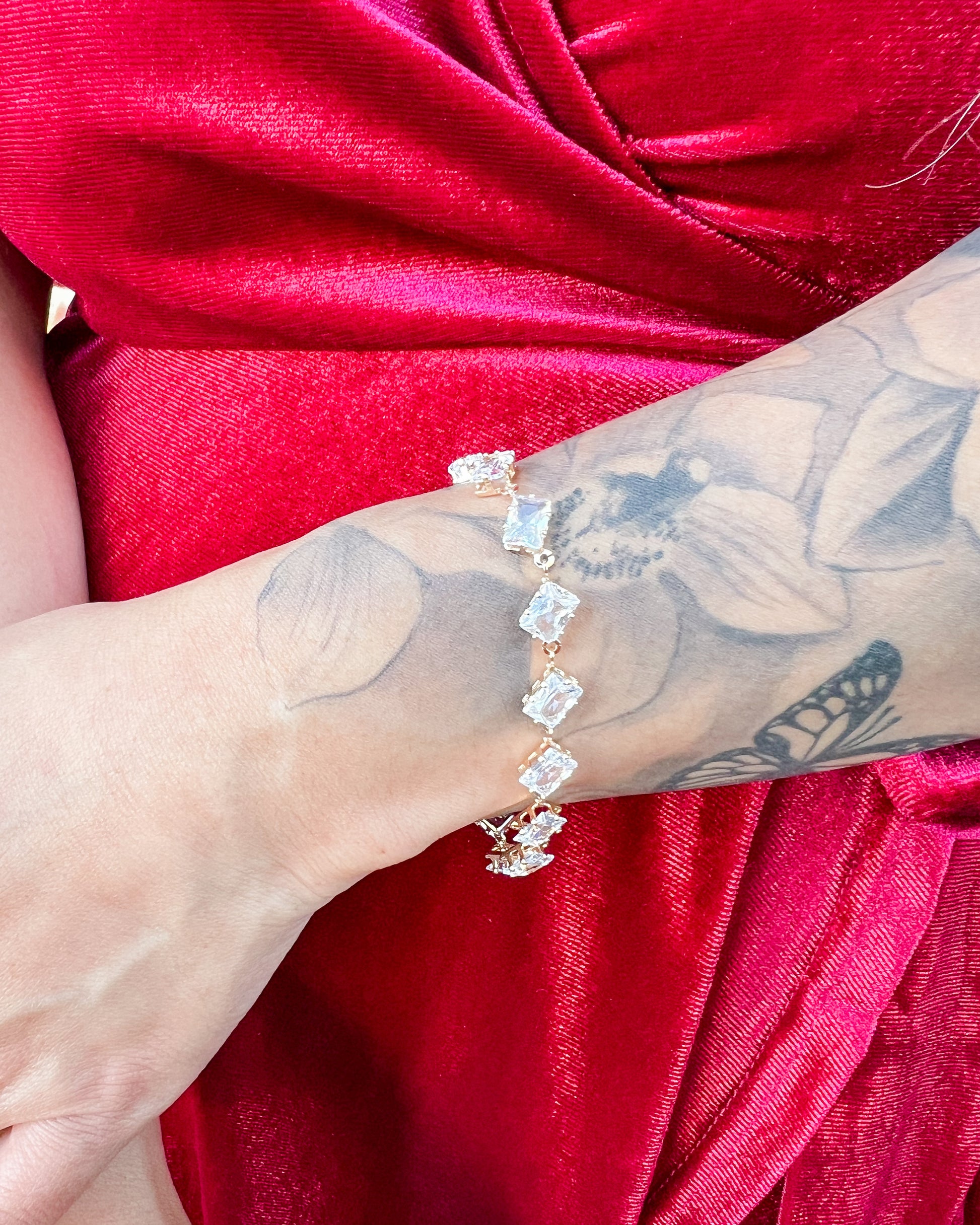 Add some sparkle to your wrist with our new Shine On Bracelet. This would be a gorgeous accessory for your next date night! Gold & silver plated. Adjustable.