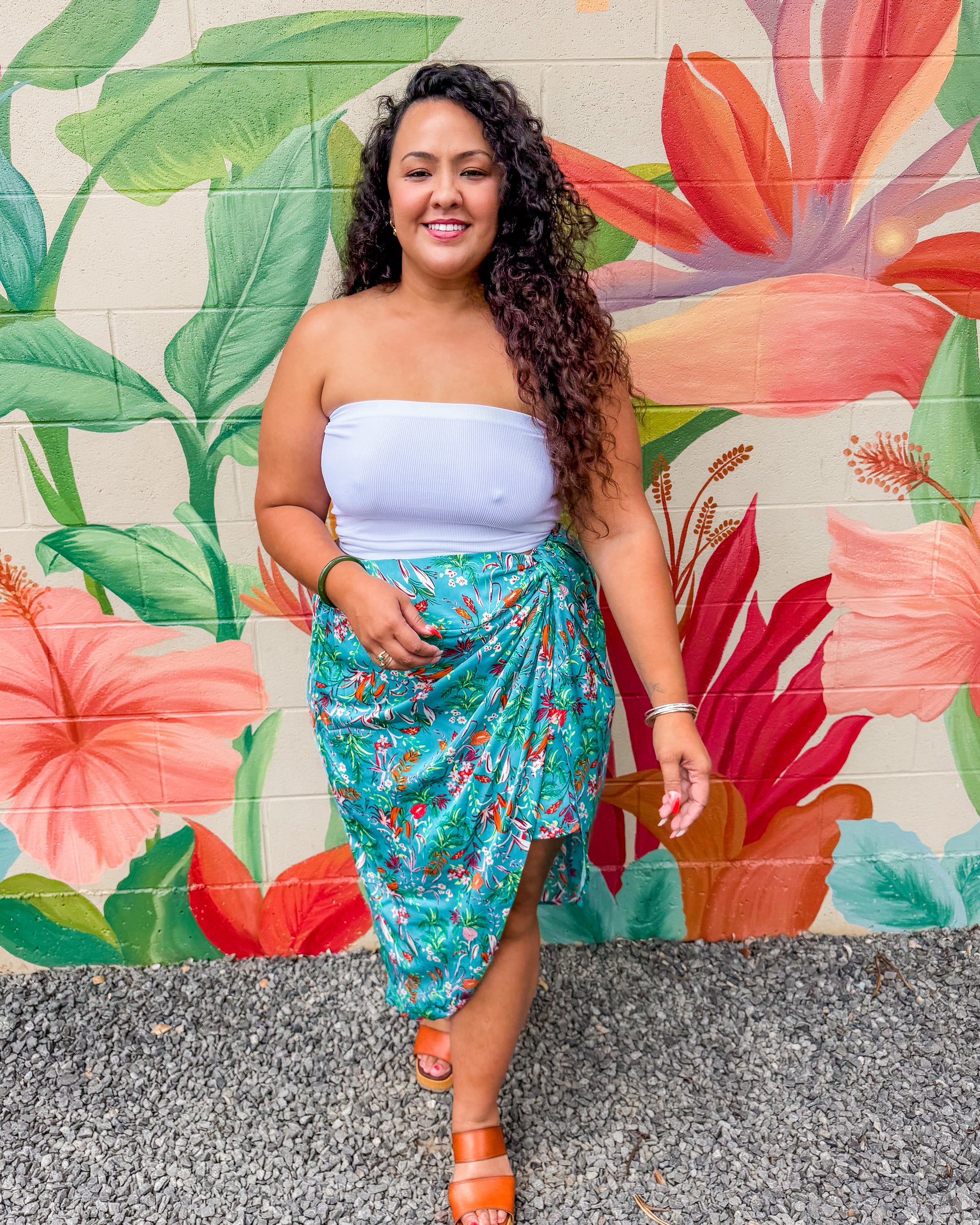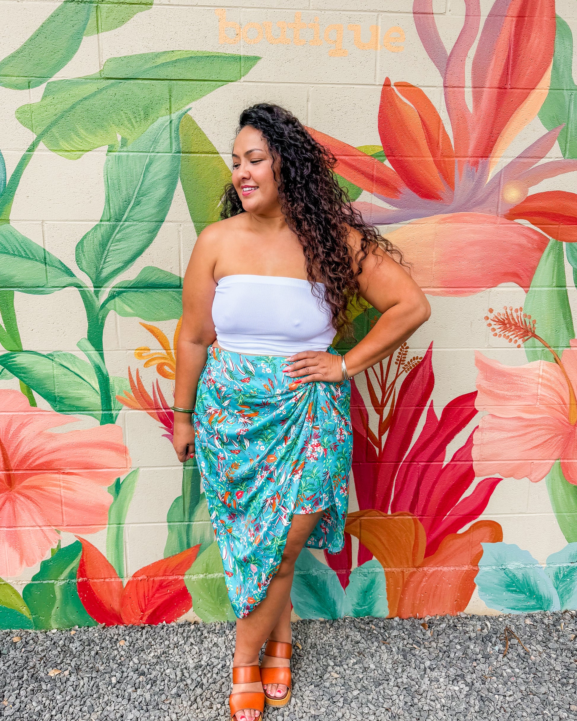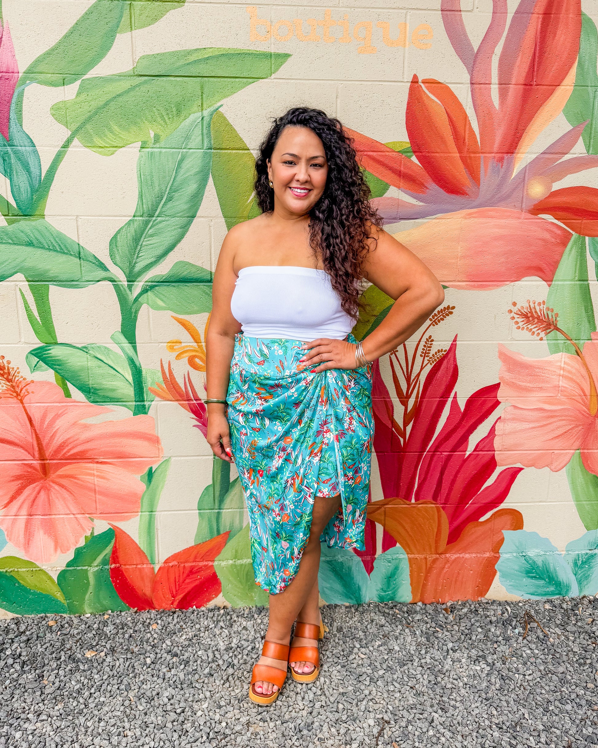 The Sonrisa Skirt features a tropical print and a faux wrap design that flatters your silhouette while offering easy wear. Its lightweight fabric and relaxed fit make it an ideal choice for warm days, bringing a touch of island-inspired elegance to your wardrobe.