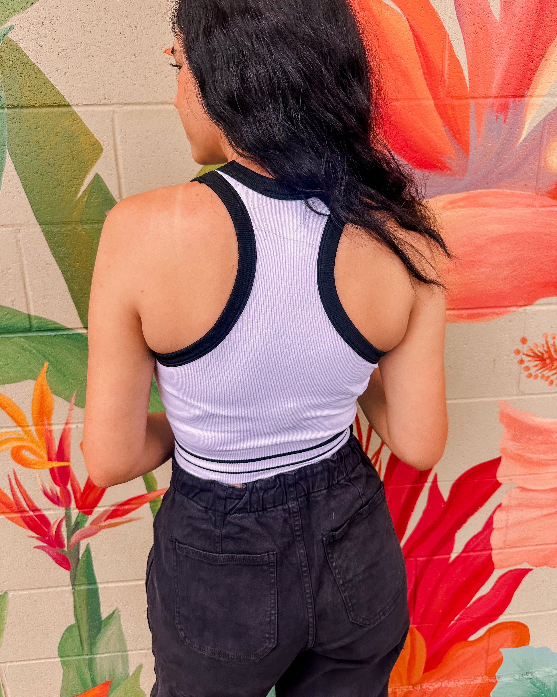 This Stanley Tank features a vibrant red body contrasted with crisp white trim, offering a clean and classic look. Its simple design makes it a versatile choice for casual wear, providing comfort and style in one easy piece.