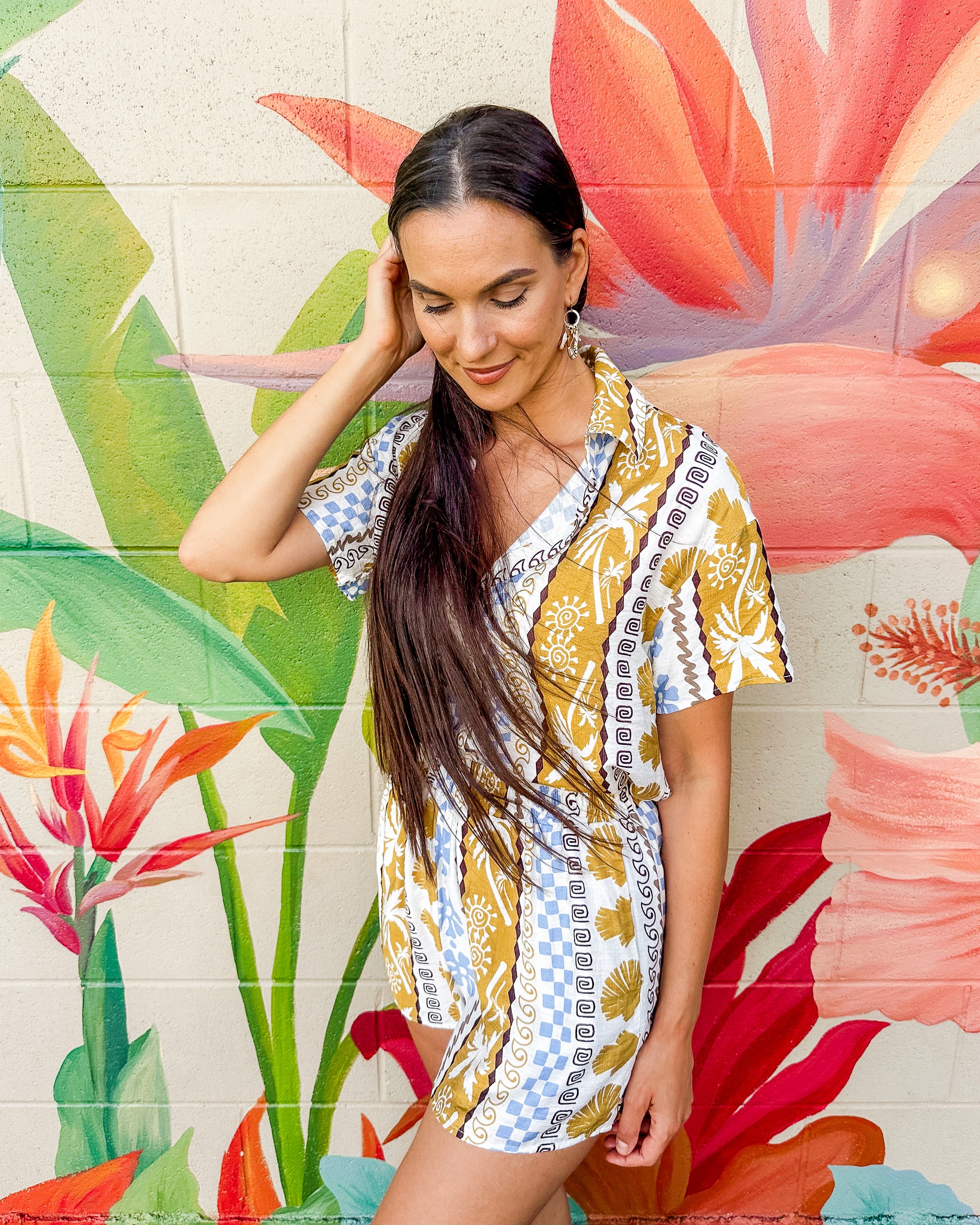 The Sunrise Shorts offer a tropical-inspired look with an easy elastic waistband for a comfortable fit. Designed with practical side pockets, these shorts blend relaxed style and functionality, making them perfect for warm weather and casual days. Their lightweight fabric ensures you stay cool and comfortable throughout your day.