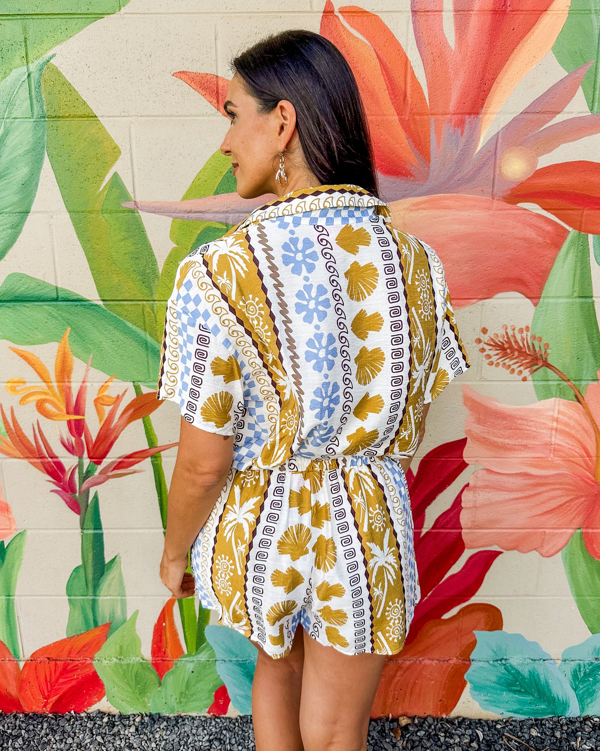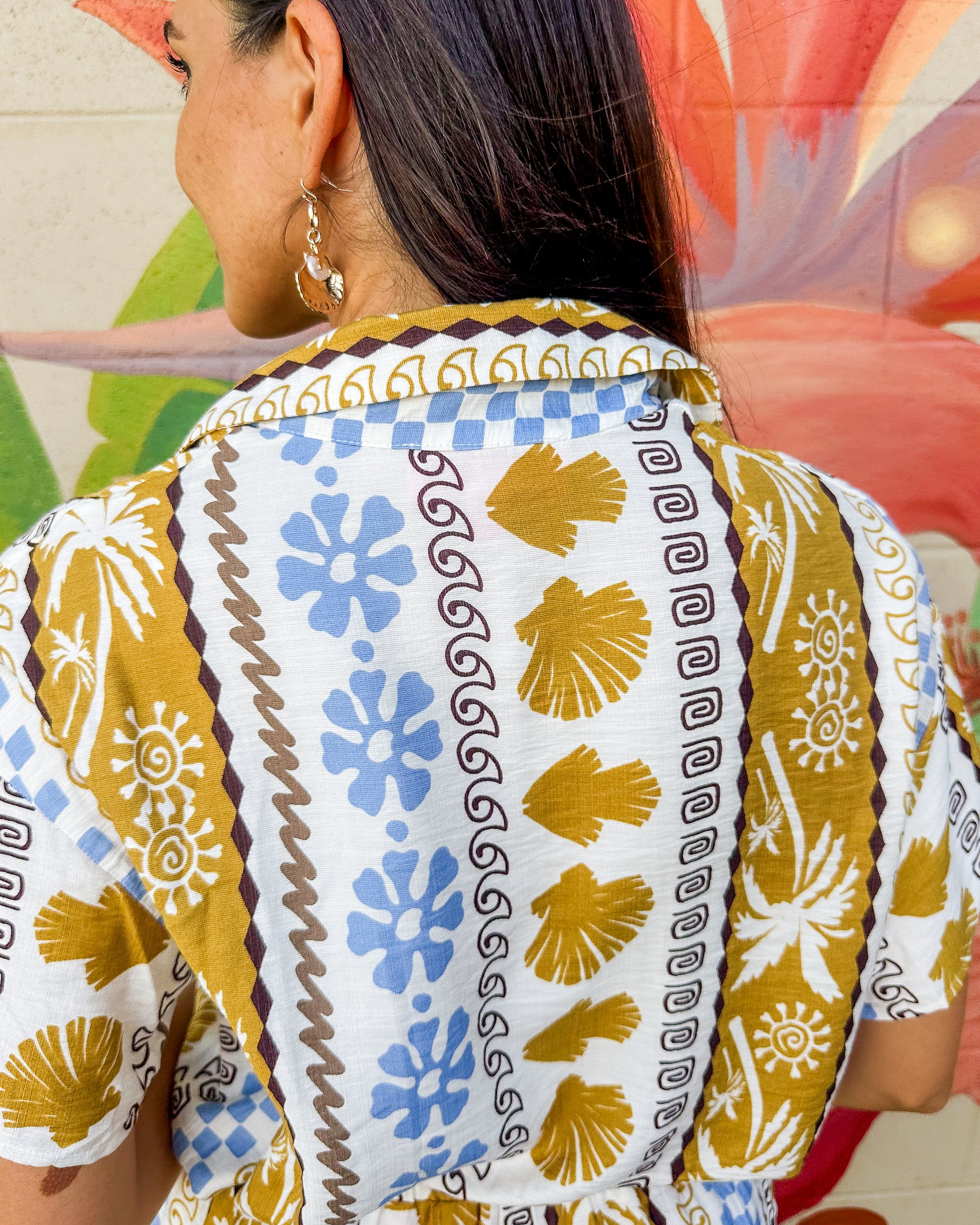 Embrace effortless island style with the Sunrise Top, a tropical-inspired button-down featuring short sleeves for breathable comfort. Its relaxed fit and vibrant design make it perfect for warm days, bringing a calm, laid-back vibe to your wardrobe. Ideal for casual outings or beachside strolls, this top combines comfort and style with ease.