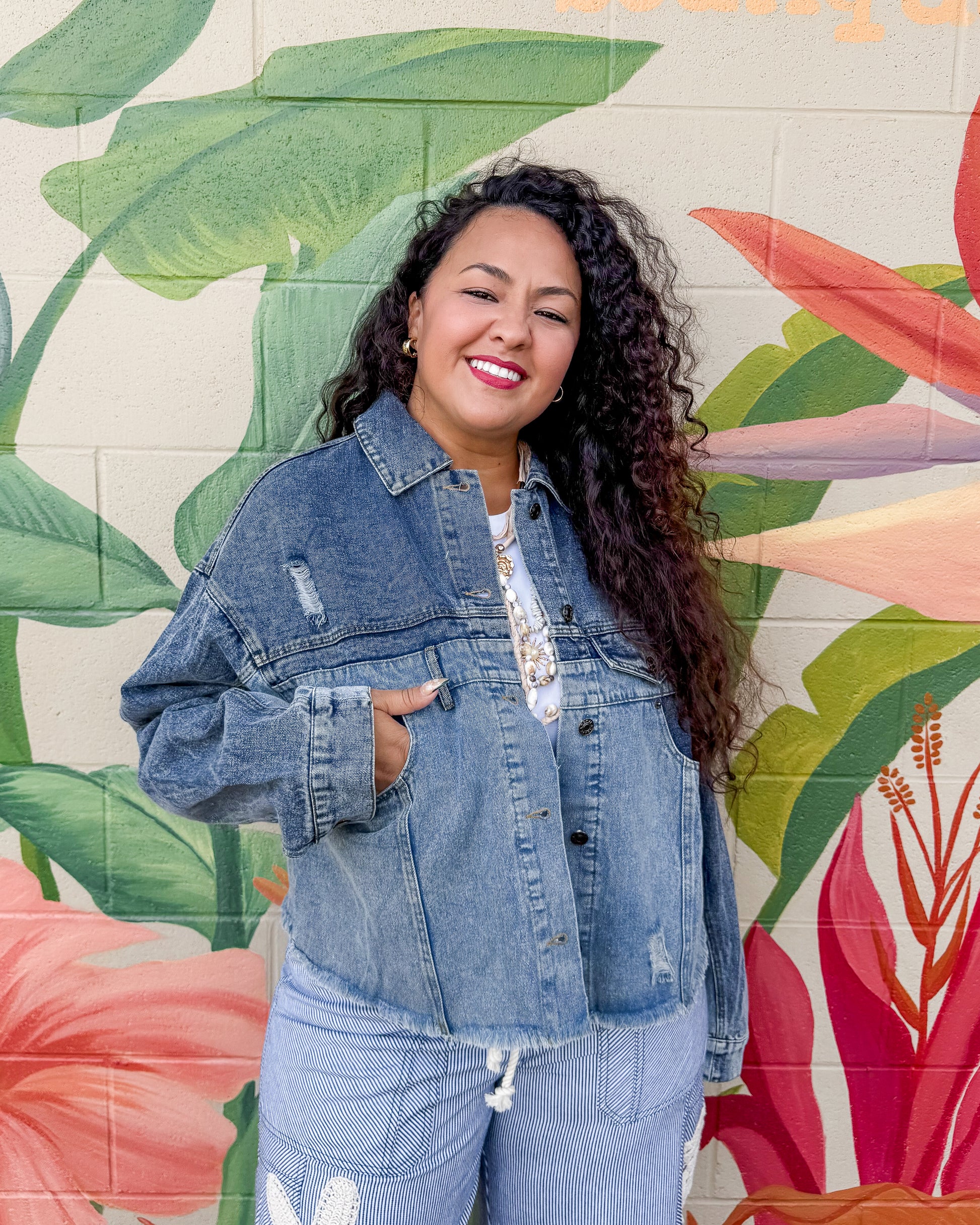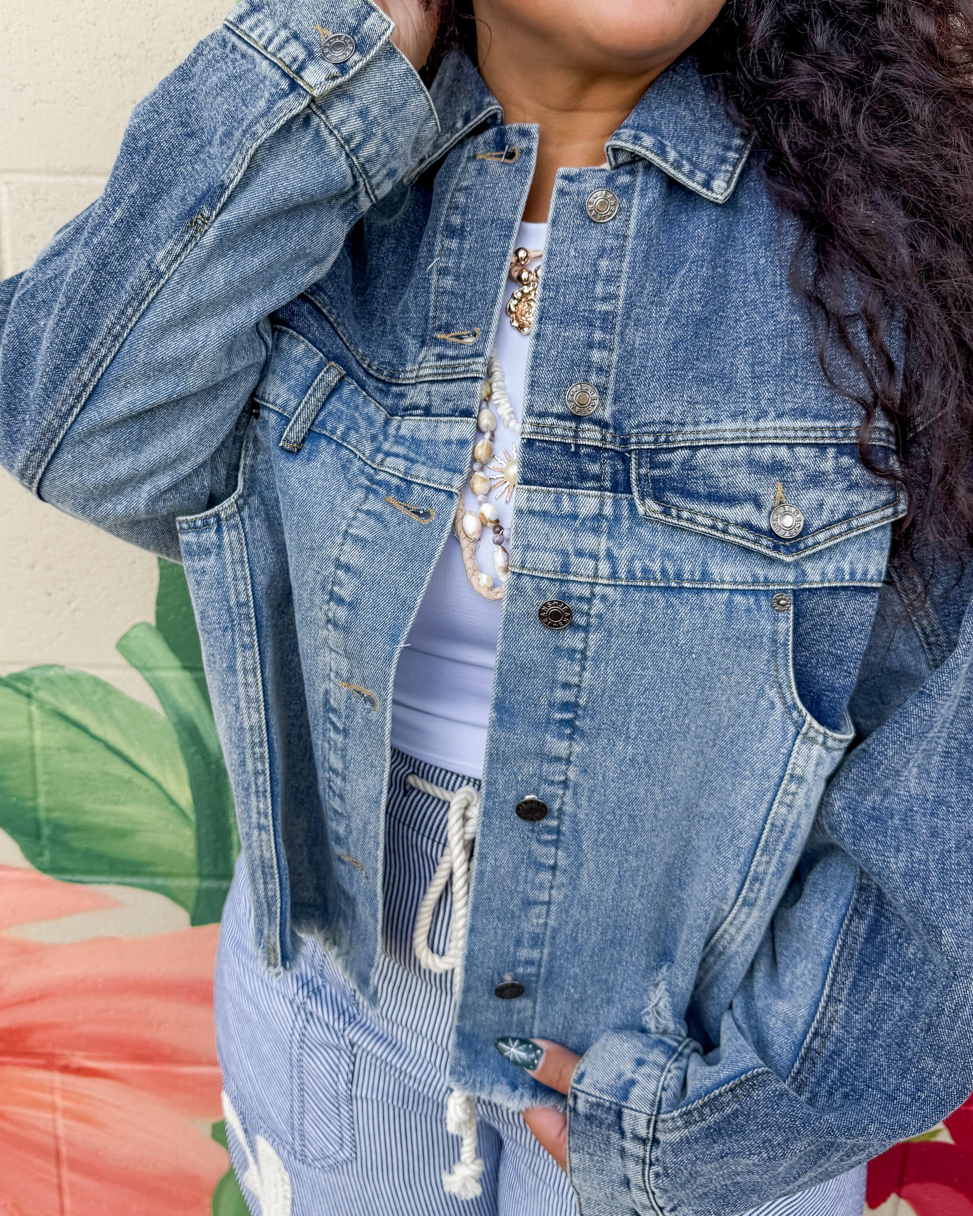 The Sweeney Jacket blends classic denim style with modern edge. This two-tone washed design features a functional bust pocket and subtle distressing for an effortlessly cool look. Perfect for layering over any outfit, it's a versatile wardrobe essential that works year-round.