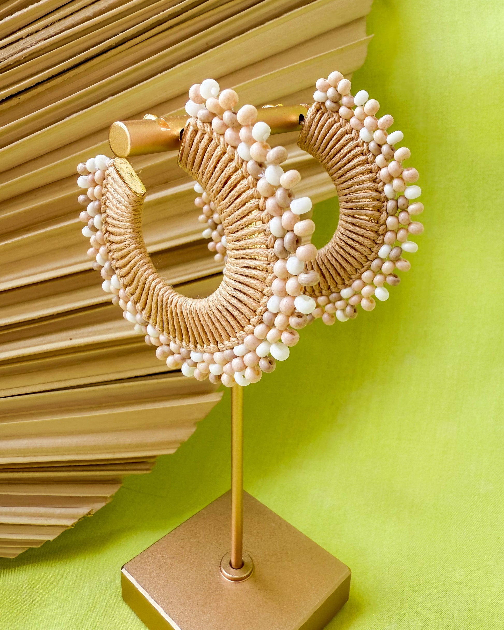 Despite the bright collection this week, we had to include these fun neutral earrings. Wrapped with a fan of multi color beads, these earrings are going to literally match everything in your closet! Plated.