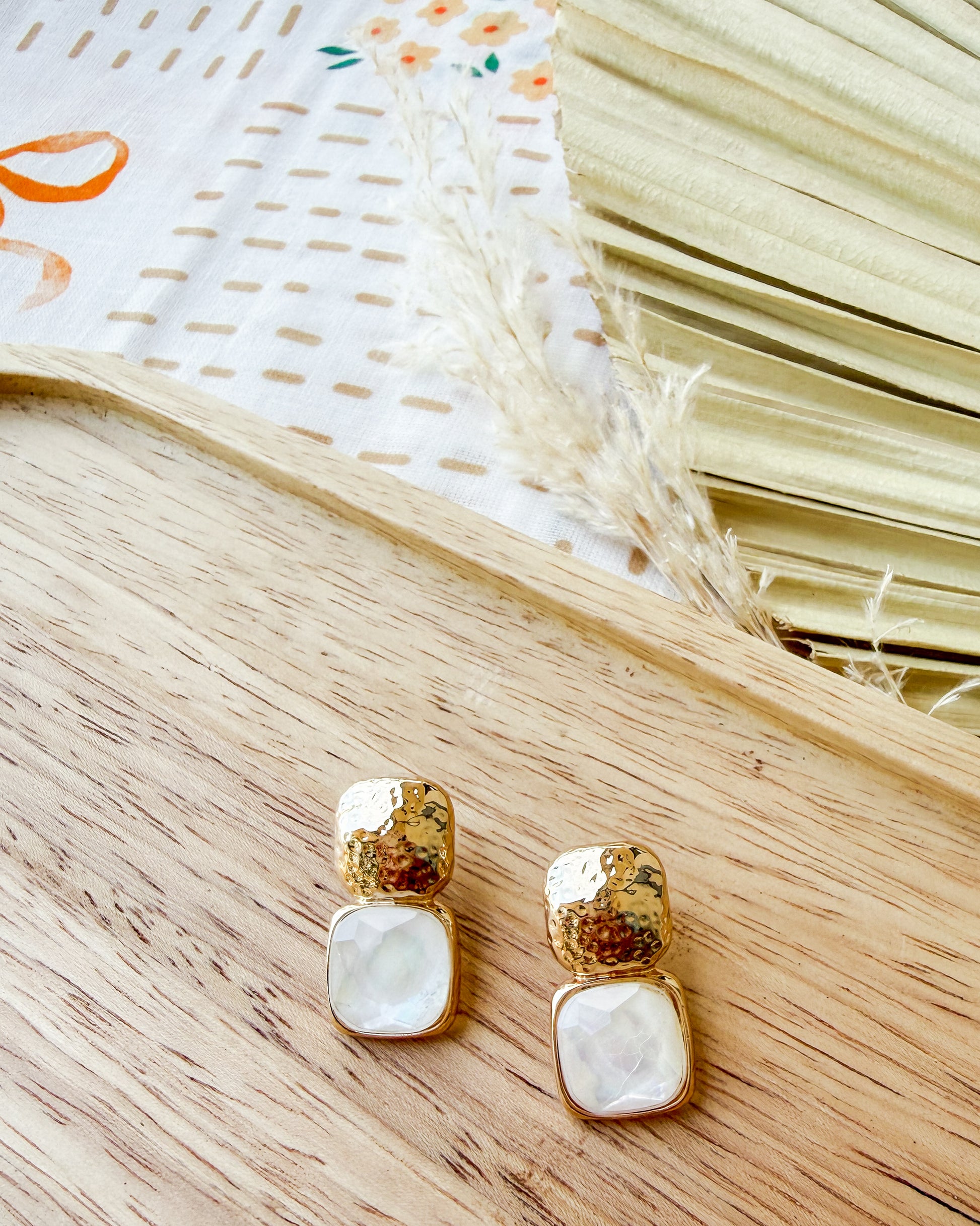 Gold plated textured studs with a bold iridescent pop. Lightweight. Pair her with our Take Me Out Necklace!