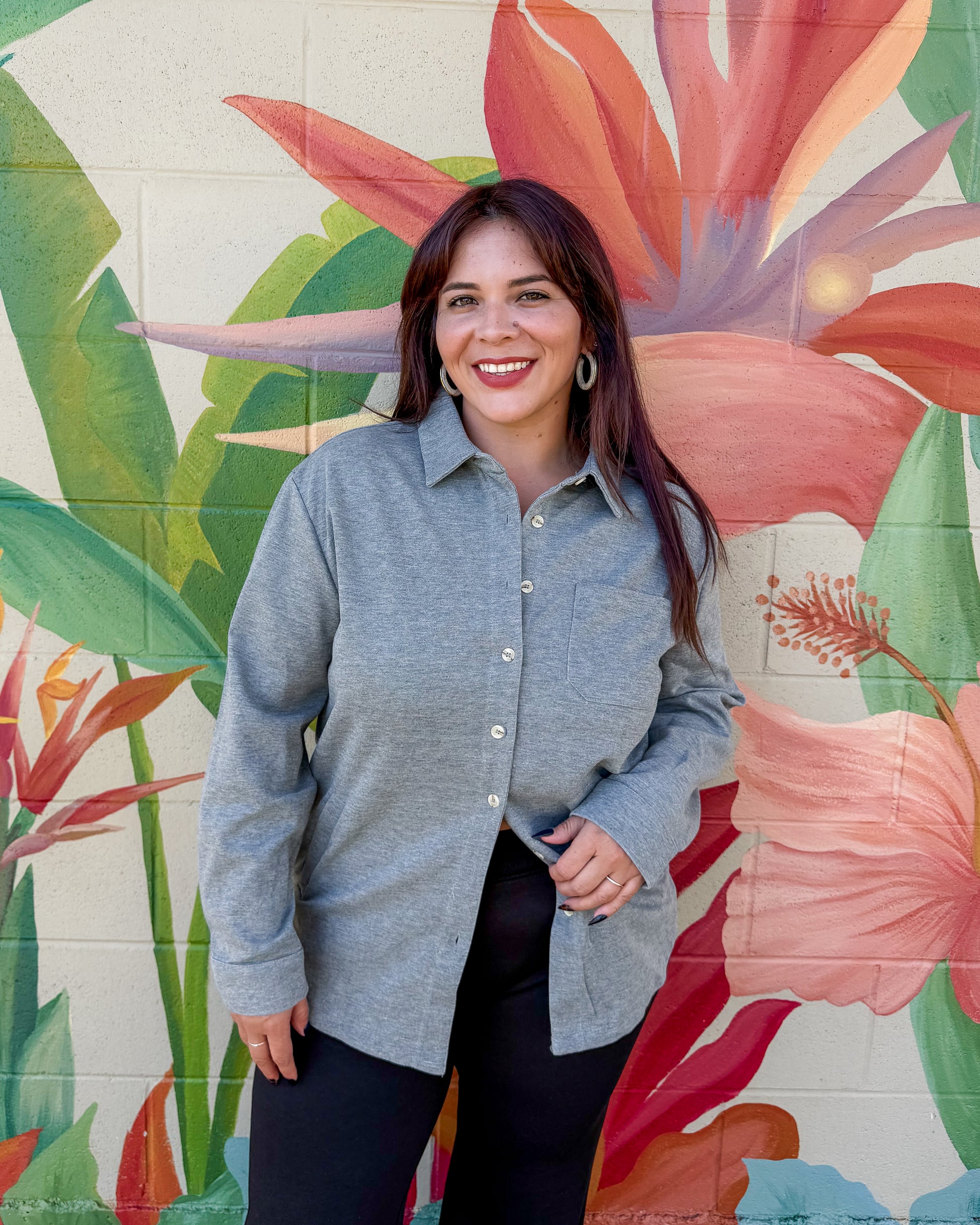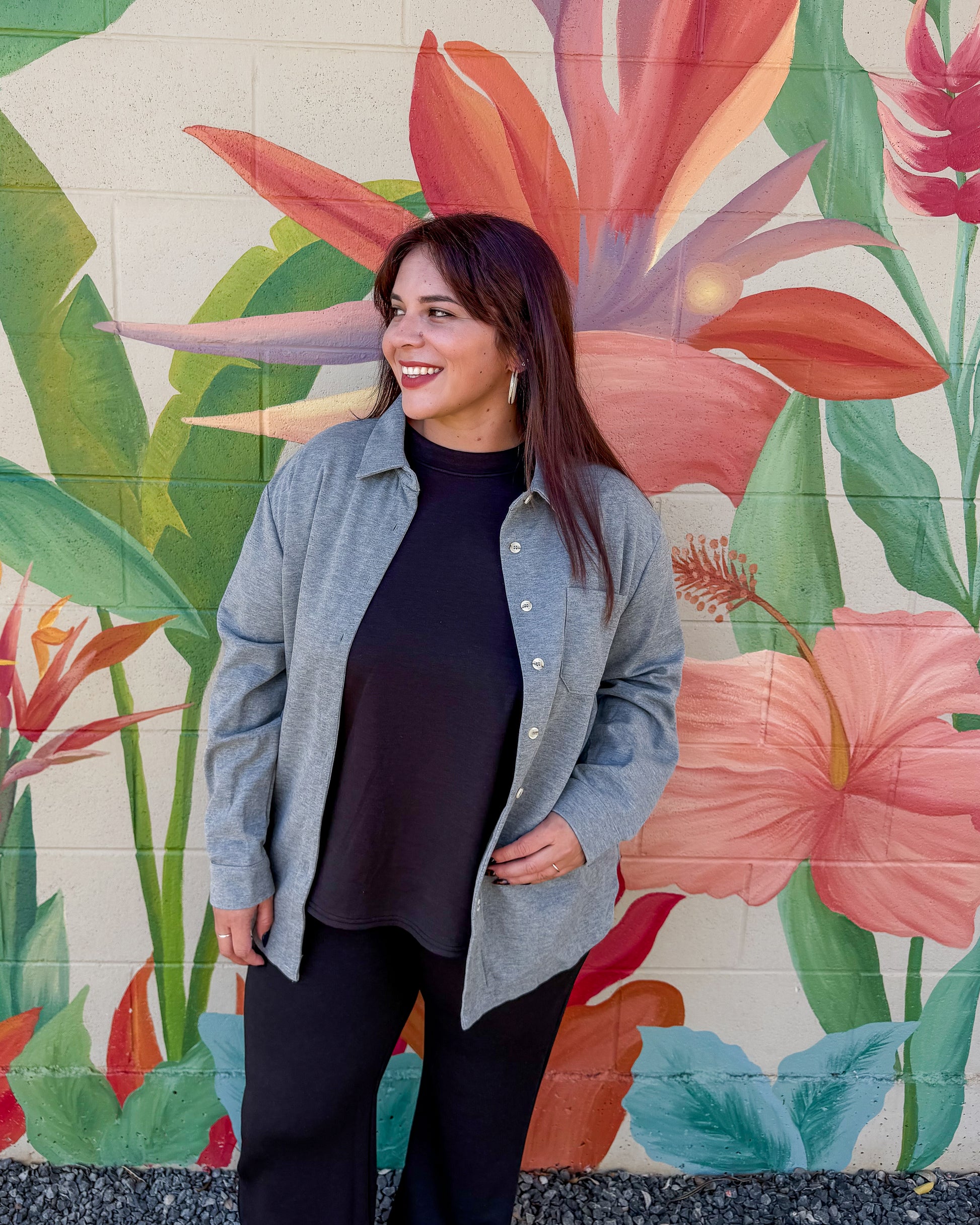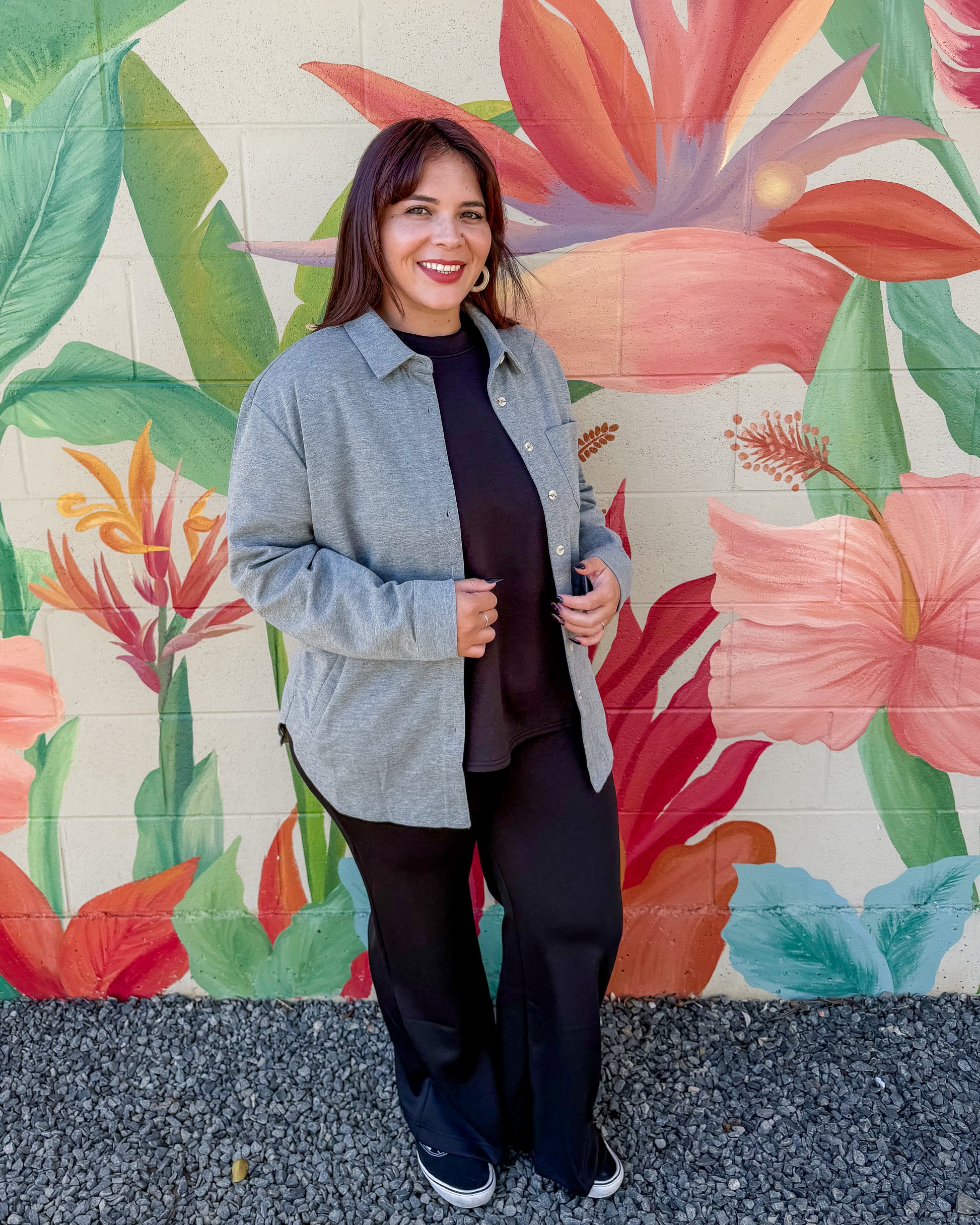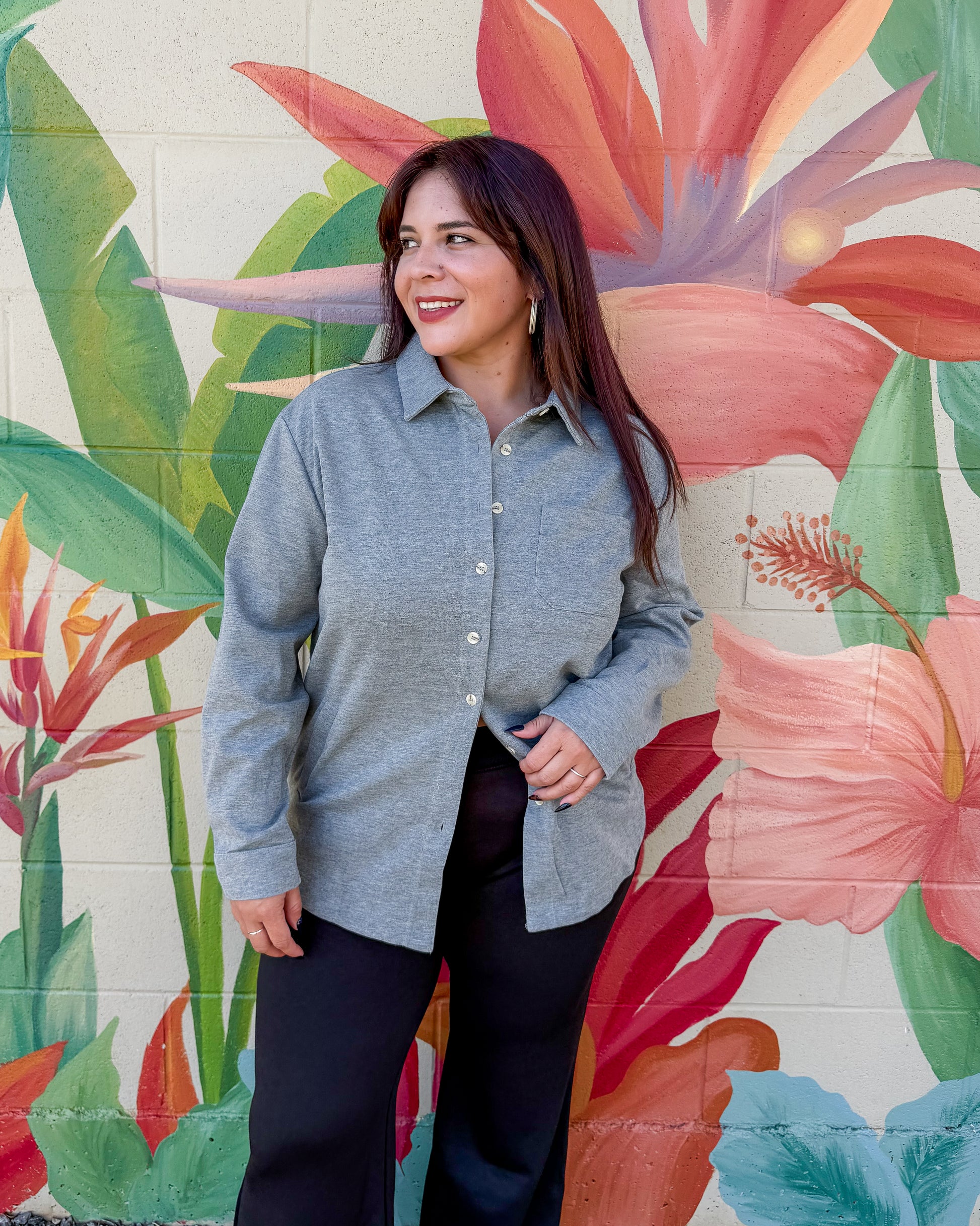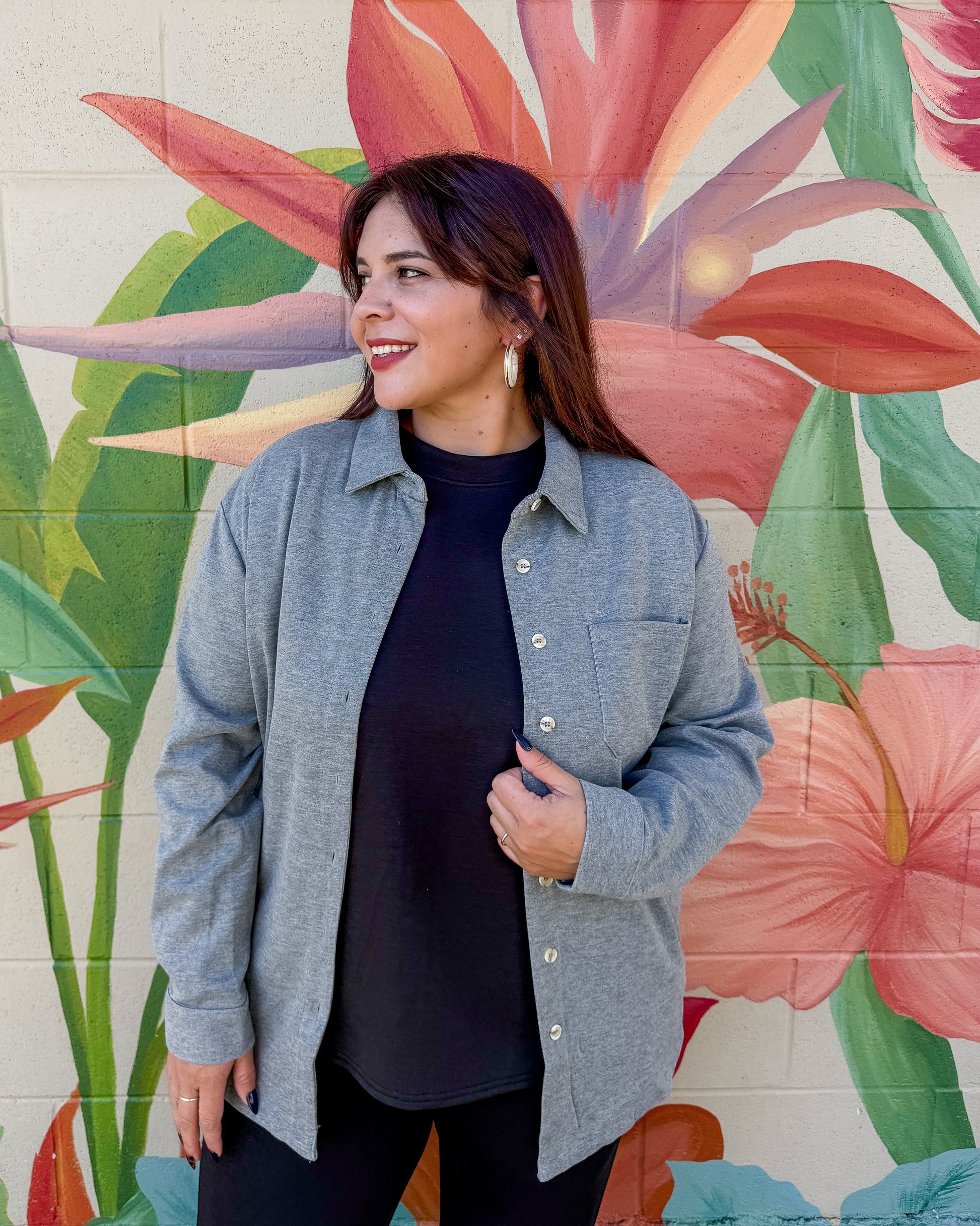 The Tara Shacket blends comfort with style in a luxeknit fabric that moves with you. Its oversized silhouette and stretch material make it perfect for layering, while the curved split hemline adds an effortless, modern edge. Wear it as a shirt or jacket—versatile enough for any occasion.