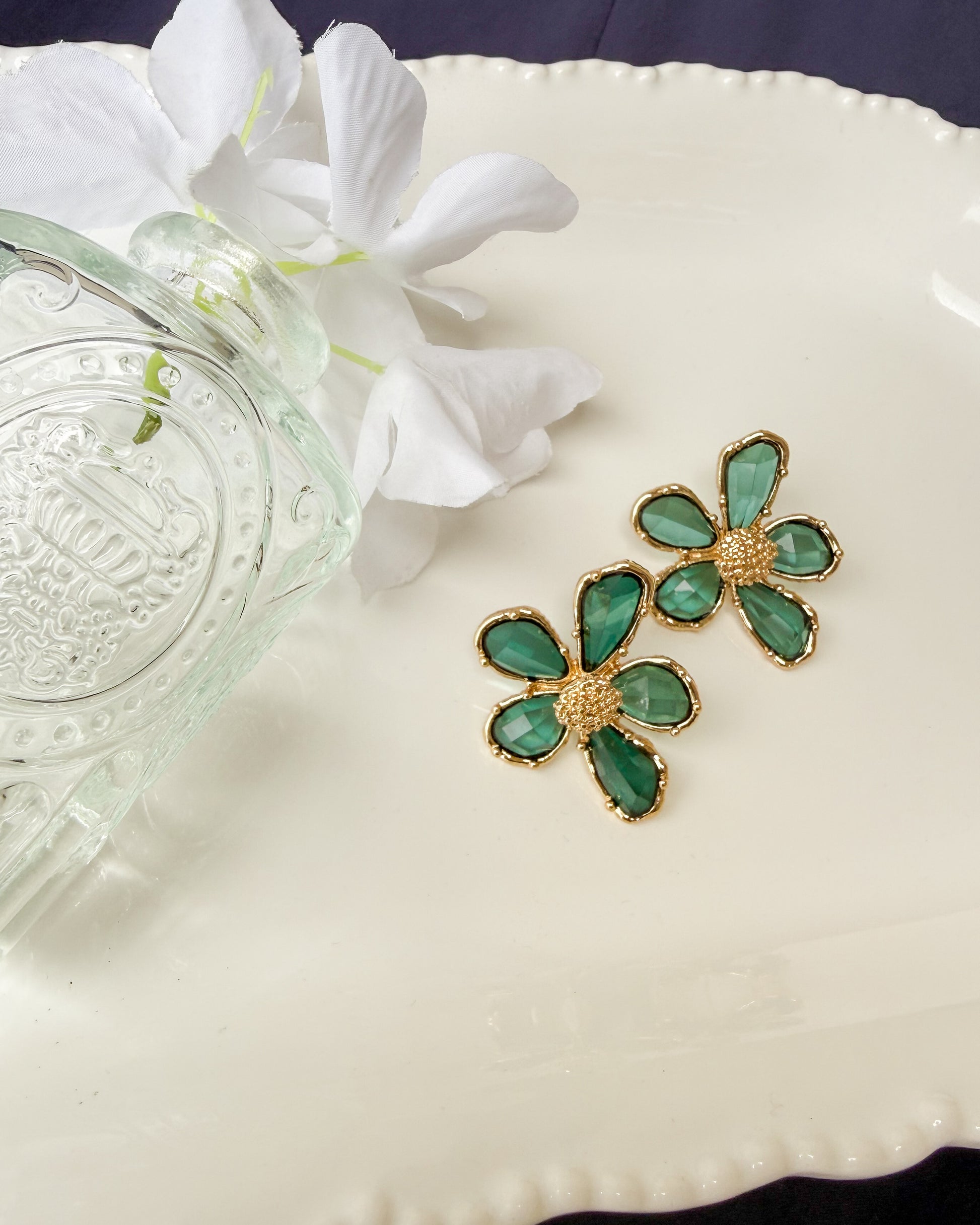 These elegant emerald floral studs are THE statement piece this holiday. Luckily, they're not too holiday either so you can definitely rock them throughout the year. Gold plated.