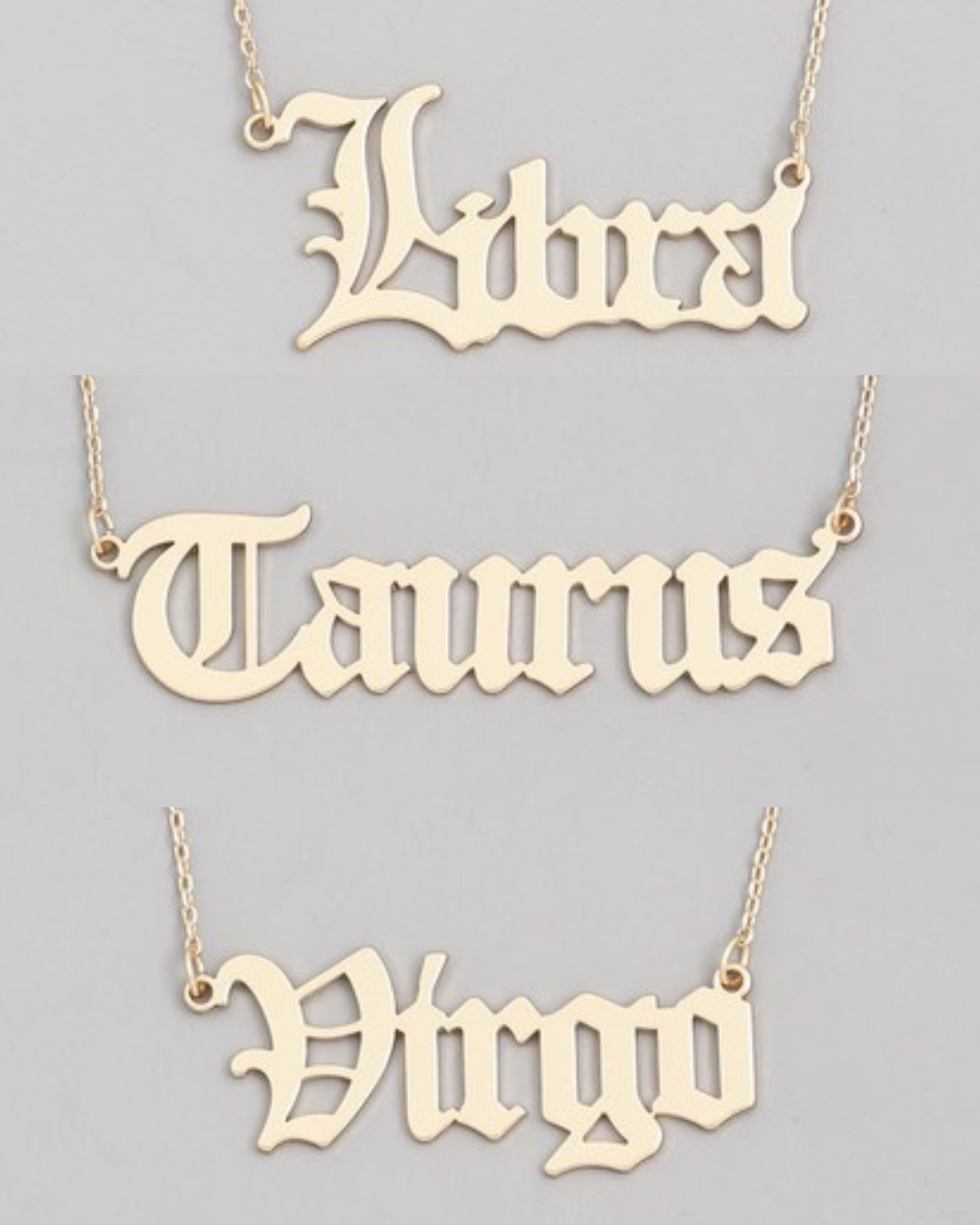Gold plated, collarbone-length necklaces. Perfect for zodiac lovers!